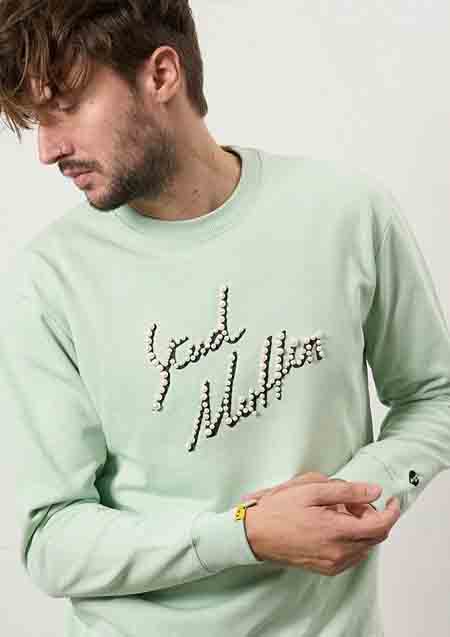 パールチャームを使用したスウェットアイテム